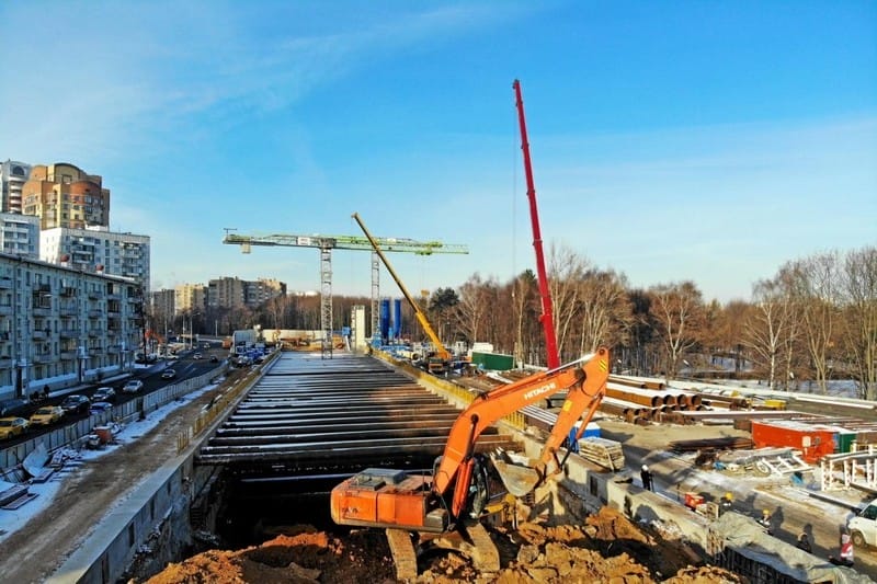 «Выемка грунта из котлована станции метро “Мичуринский проспект” Большой кольцевой линии метрополитена выполнена на 50 процентов. Станция запроектирована с двумя вестибюлями: наземным и подземным. Объединенный наземный вестибюль станции “Мичуринский проспект” соединит Большую кольцевую линию и Солнцевский радиус Московского метрополитена», — сообщил руководитель Департамента строительства города Москвы Андрей Бочкарев.