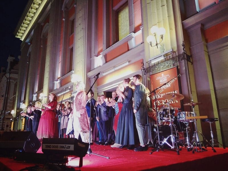 30 июня на Арбате, у центрального входа Театра им. Евг. Вахтангова, по традиции (в десятый раз!) состоялось праздничное закрытие 98-го сезона. Инициатором заключительных праздников на Арбате стало молодое поколение театра, и эта идея была поддержана его художественным руководителем Римасом Туминасом, директором Кириллом Кроком и артистами всех поколений.