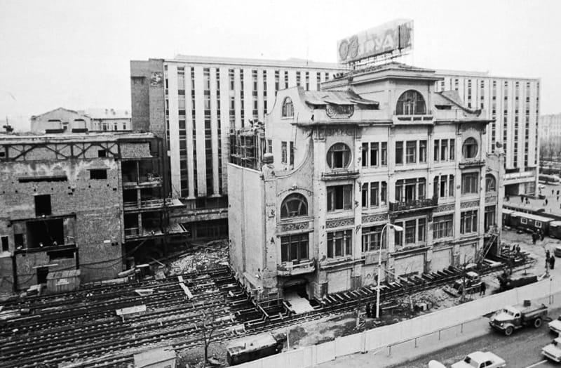 Настоящий бум переездов охватил Москву в 1930-е годы. Планы по перемещению зданий были такими масштабными, что в 1936 году даже была организована специальная контора — «Трест по передвижке и разборке зданий», руководил которой инженер Эммануил Гендель (как его в шутку тогда называли коллеги – «архитектурный передвижник»).