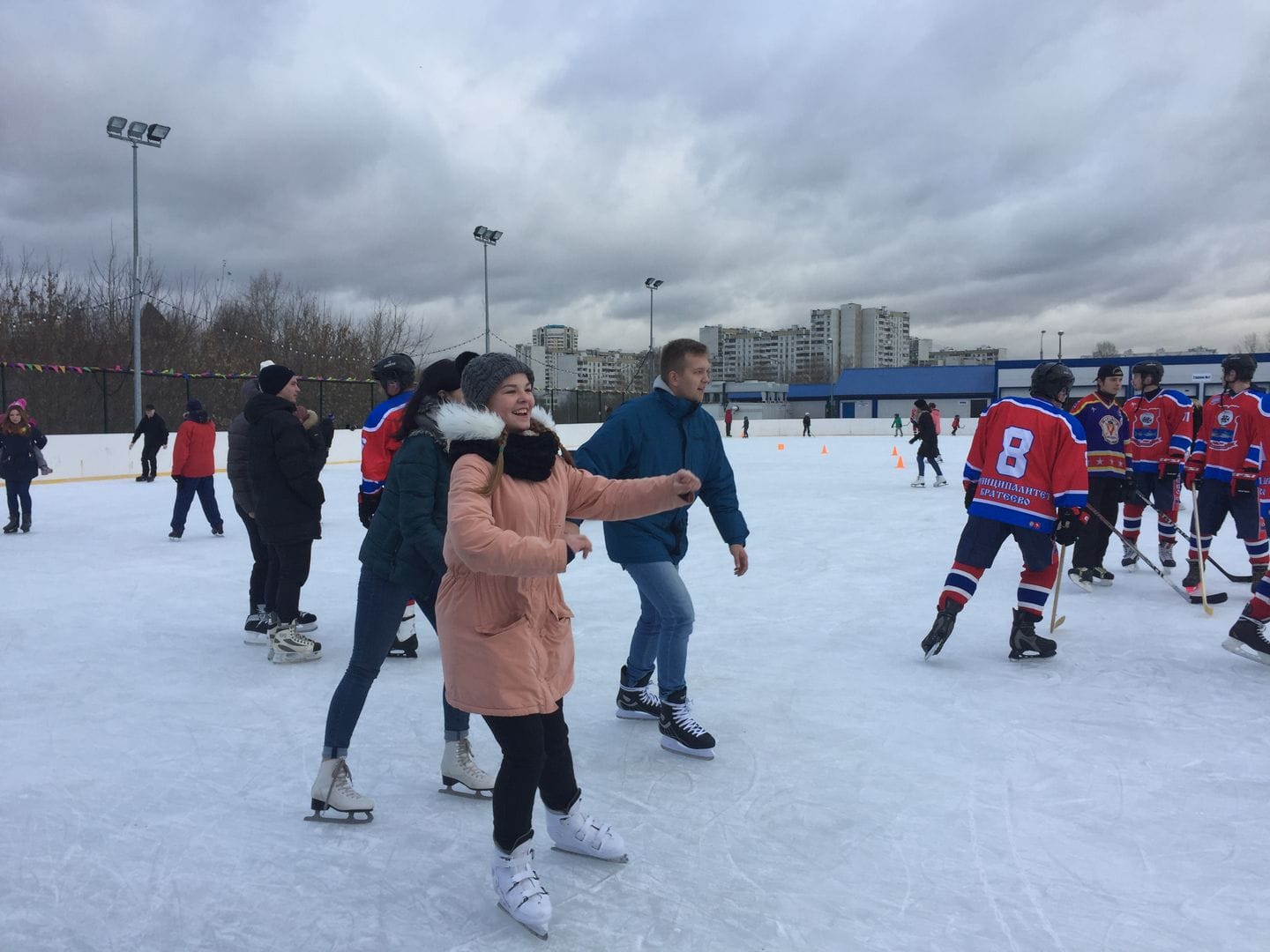 Каток в «Братеево» встретил гостей веселым маршем хоккеистов. На льду собрались фигуристы и хоккеисты «от мала до велика».