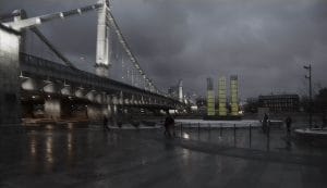 возникновение различных типов городских звуков (шум машин и проплывающих по реке теплоходов, голоса людей, уличная музыка и т. д.).