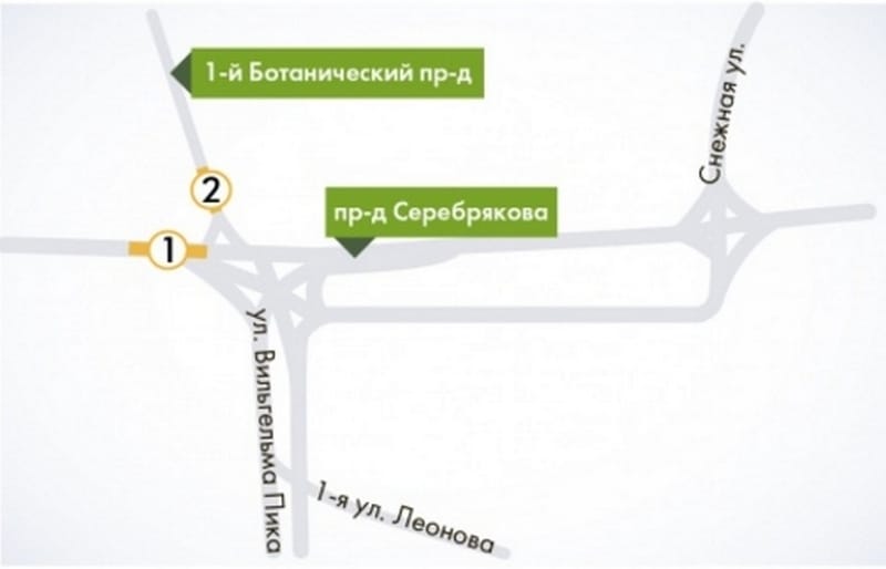 С 14 по 28 февраля частично ограничат проезд на 1-м Ботаническом проезде в районе пересечения с пр-дом Серебрякова.