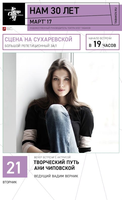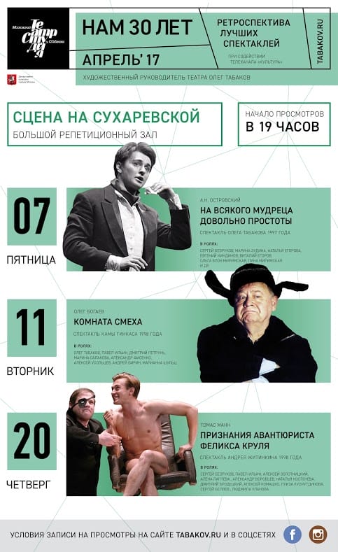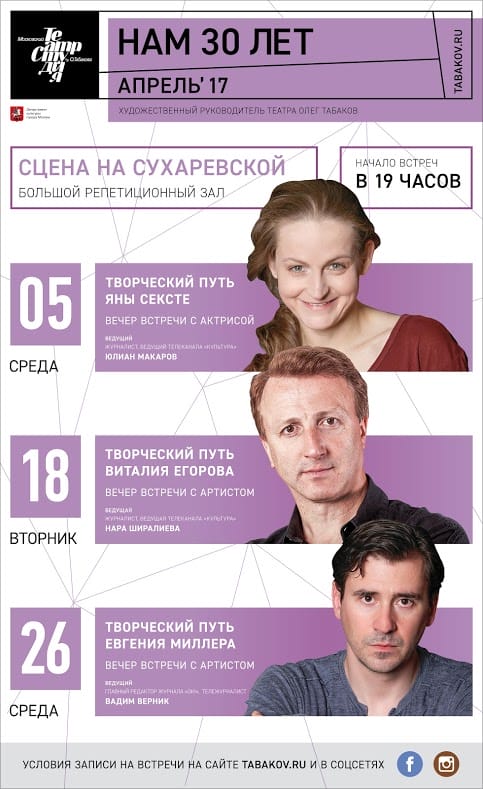Открыта запись на творческие встречи с актерами «Табакерки»