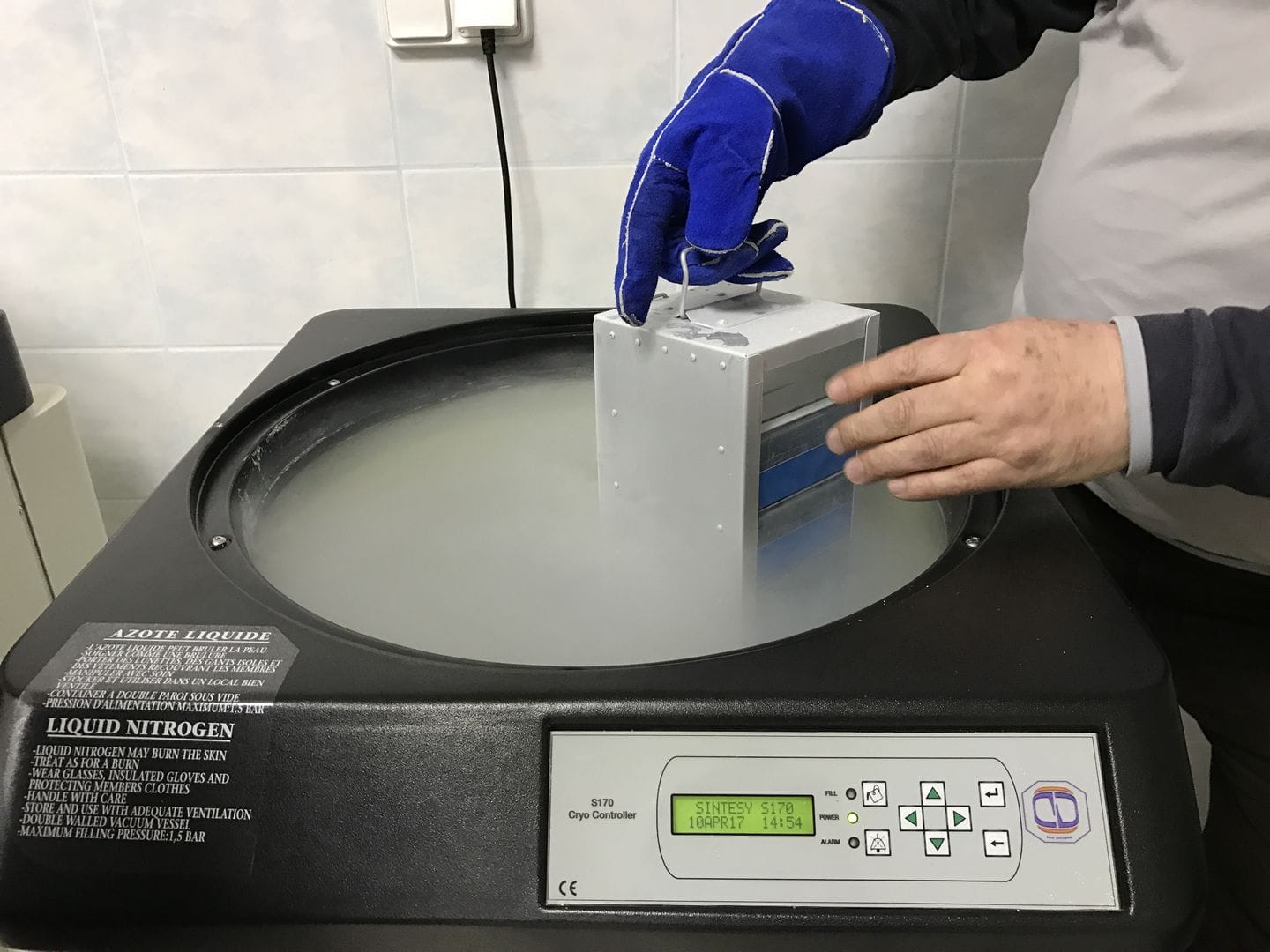 В отдельном помещении криобанка находится система автономной генерации жидкого азота из воздуха. «Установка состоит из нескольких частей: компрессор нагоняет воздух под давлением, затем происходит отделение азота от примесей других газов, и на последнем этапе происходит сжижение азота, — рассказывает Владимир Лобаков, главный инженер Центра превосходства в области биотехнологий МГУ. — Система полностью автономна: она включается, когда количество жидкого азота в конечном резервуаре меньше нижнего предела, и отключается, когда превышен верхний порог».