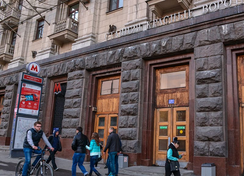 Станция «Красные ворота» Сокольнической линии метро – одна из старейших в столице, она была открыта 15 мая 1935 года. Именно здесь появился первый в истории метро турникет (не считая экспериментального образца 1935 года на «Библиотеке имени Ленина»). Северный вестибюль станции был построен в 1954 году, когда возводилось высотное здание на Лермонтовской площади.