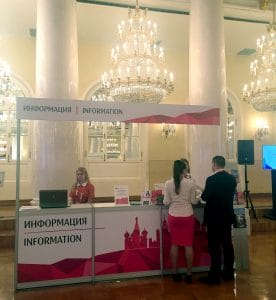 Кроме того, в холле установлен стенд с основной информацией о Москве, на котором будут распространяться сувенирные, презентационные материалы, а также комплект материалов о подготовке города к Кубку Конфедераций FIFA 2017 и Чемпионату мира FIFA 2018.