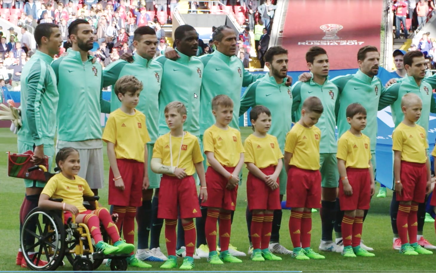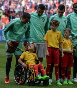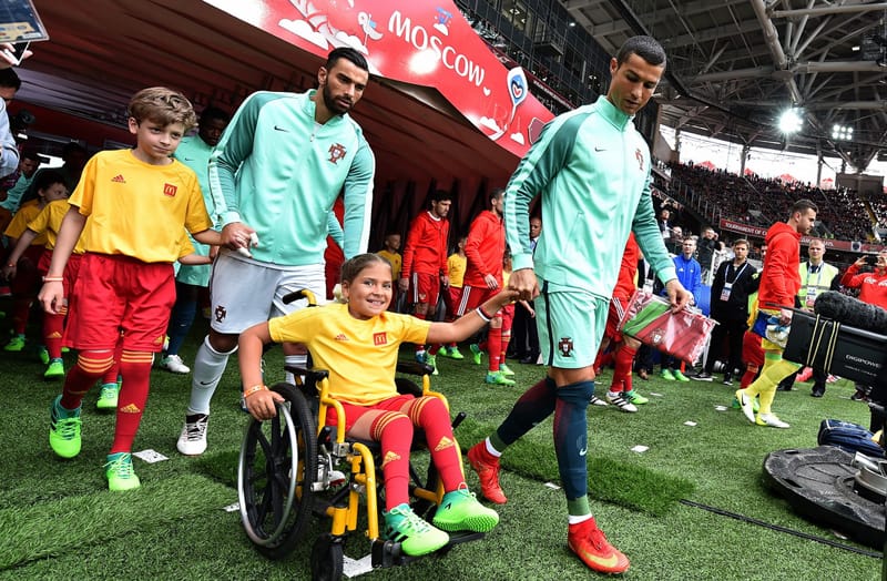 В какой-то мере это взятие ворот стало историческим: прежде португальцы в гостях нашей сборной не забивали. Но куда примечательнее другое событие, связанное с автором гола и тоже произошедшее впервые. Криштиану Роналду вышел на поле, взяв за руку девочку в инвалидной коляске. Прежде на столь значимых соревнованиях под эгидой ФИФА в подобной церемонии дети с ограниченными возможностями здоровья не участвовали.