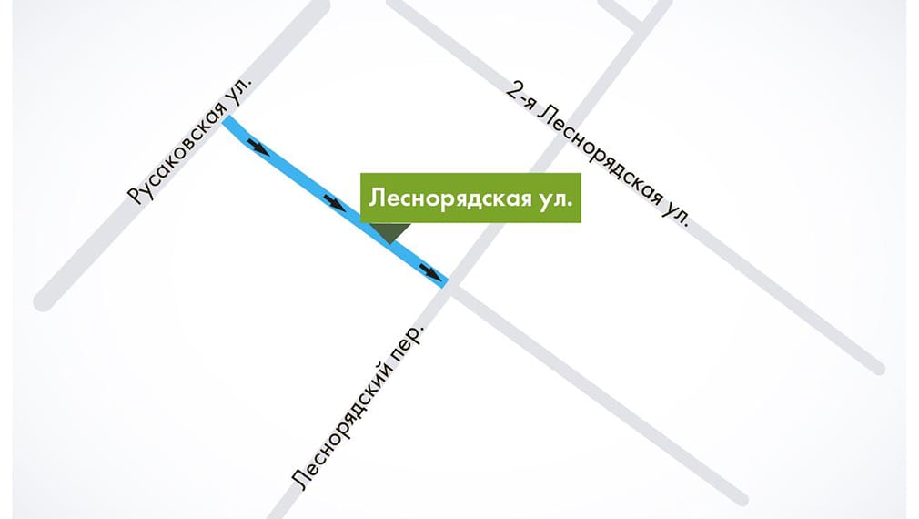На данном участке автомобильный поток будет двигаться от Русаковской улицы в сторону Леснорядского переулка.