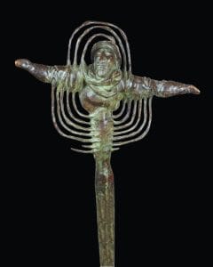 Среди мастеров, представленных на выставке, преобладают скульпторы, и в этом тоже специфика осетинской культуры, рождавшейся из творений древних каменотесов, вырубавших из глыб камня грубые фигуры святых с чертами горских старцев. В чем-то близки им работы наших современников – Лазаря Гадаева, Биляра Царикаева, Дмитрия Томаева.