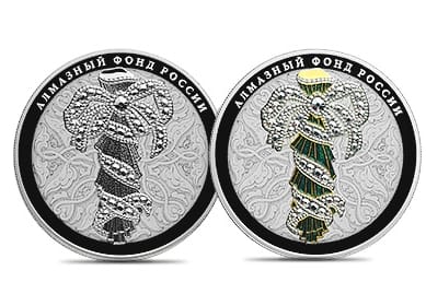 Также выпущены две серебряные монеты из серии «Алмазный фонд РФ». Их номинальная стоимость составляет 3 рубля. Тираж – по 3000 штук каждого вида. На оборотной стороне одной монеты изображен портбукет, на оборотной стороне другой – бант-склаваж. Две монеты номиналом 25 рублей в обычном и специальном исполнении с изображением банта-склаважа. Тираж – 850 и 150 штук соответственно.