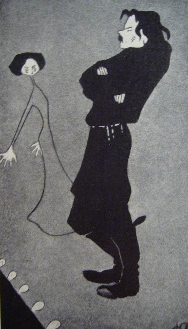 Публикуемый шарж «Горький после 3-го действия пьесы «Дачники» сделан художником А. Любимовым в 1904 году.