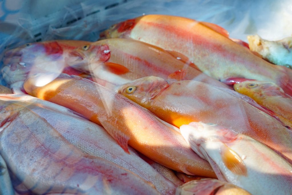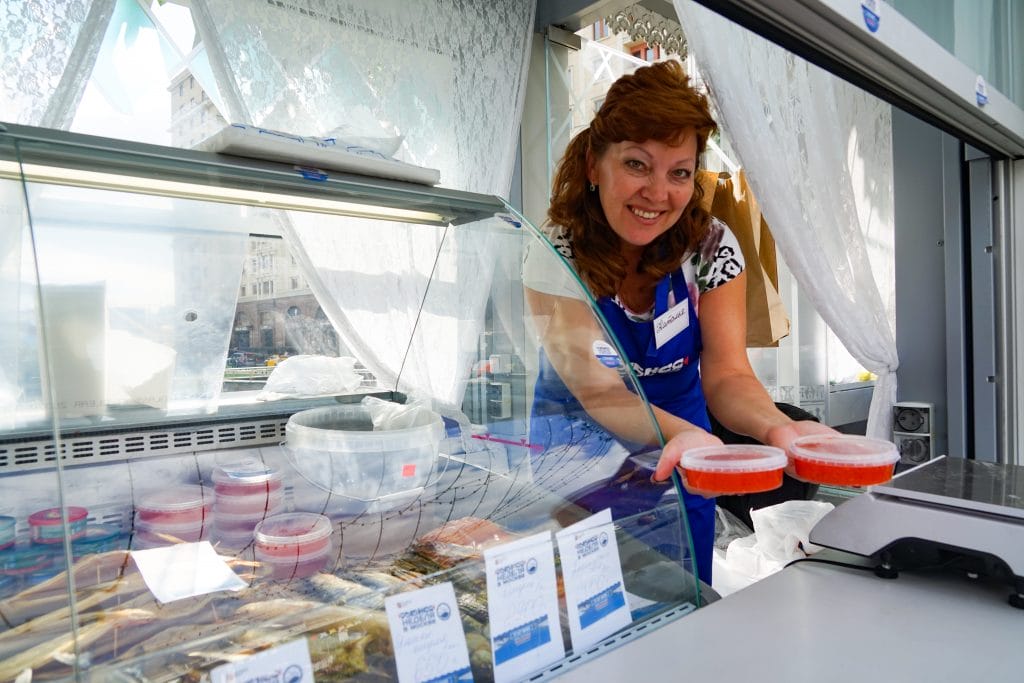 Продукция представлена отечественными производителями со всей России. Все желающие смогут попробовать и приобрести любую рыбу: свежемороженую, вяленую, копченую, слабосоленую и конечно же свежую. Также представлен на рыбных прилавках широкий ассортимент морепродуктов: крабы, креветки, устрицы, трепанги, морские ежи, черная и красная икра.