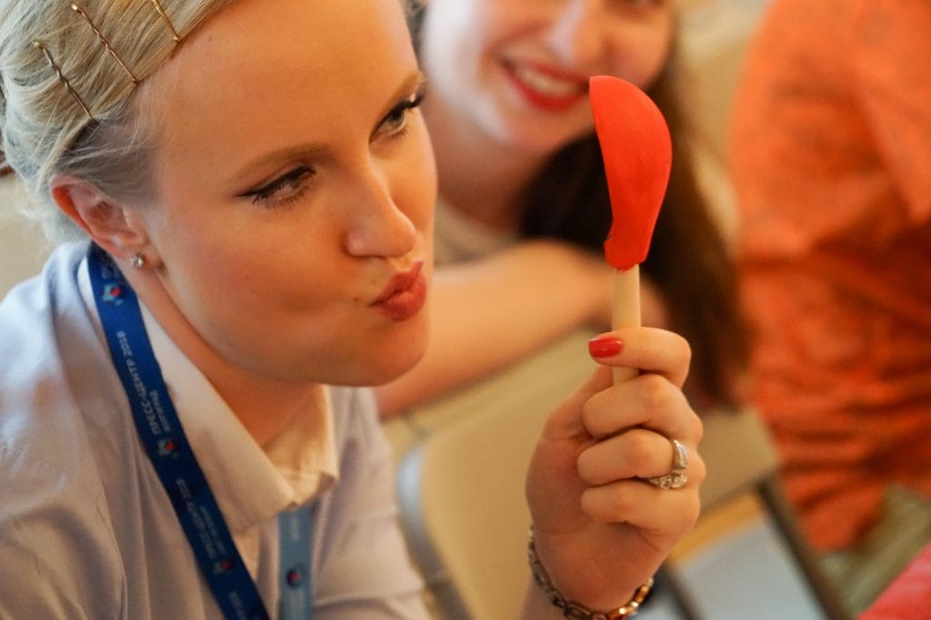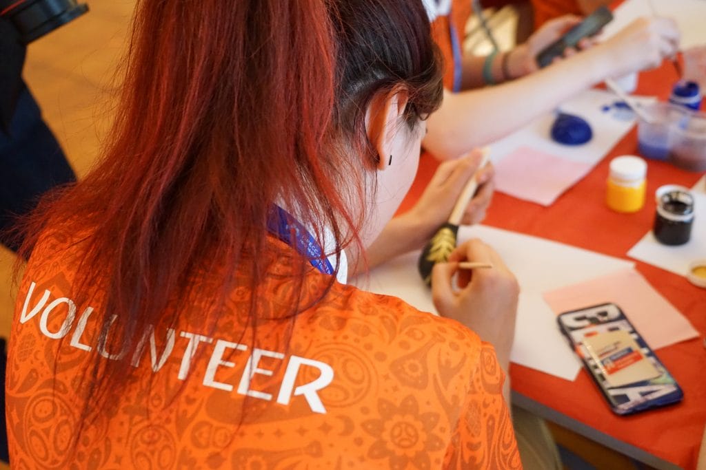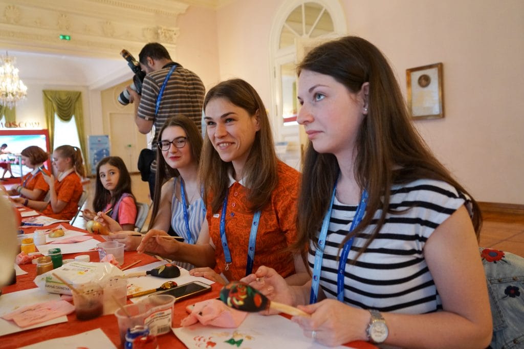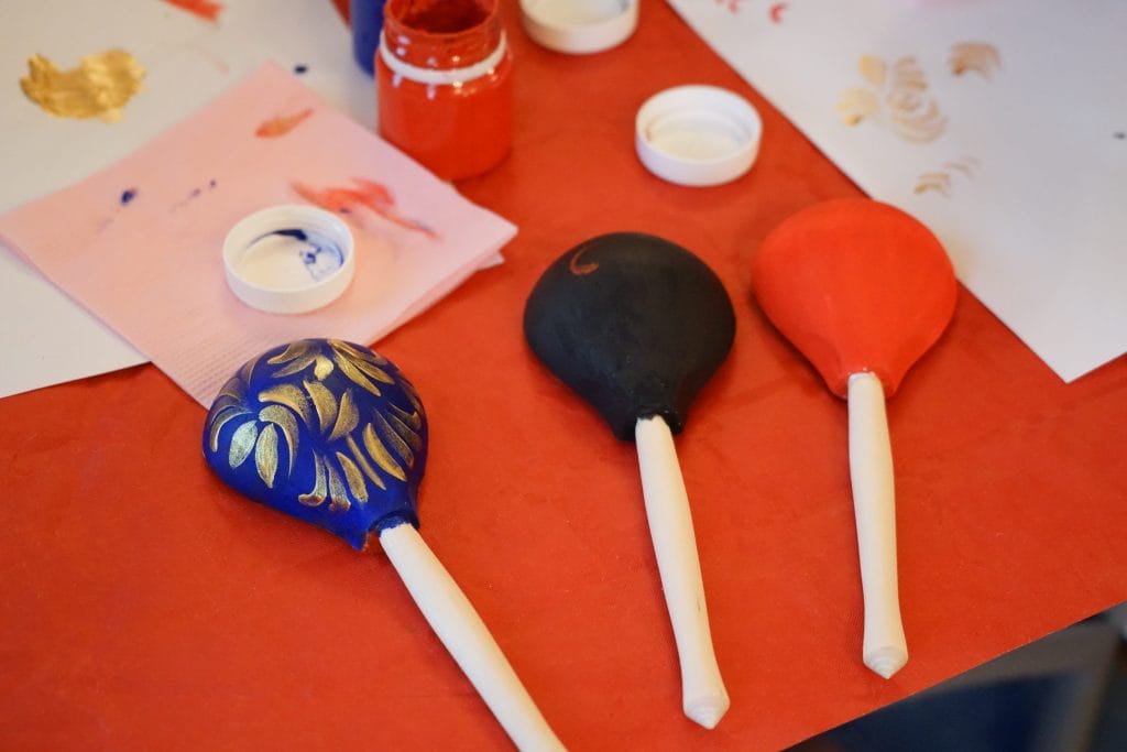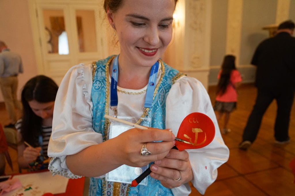 21 июня на площадке футбольного пресс-центра в Доме союзов прошли мастер-классы «Роспись деревянной ложки в технике хохлома». Как рассказала художник музея русской игрушки Измайловского кремля Светлана Колосова, роспись ложек в основном была в стиле хохломы, но свобода творчества тоже приветствовалась. Так как черный цвет символизирует землю, то на ложках рисовали все, что растет на земле: ягоды, листья, цветочки, травинки. Основные цвета узоров – черный, красный и золотой, есть вкрапления зеленого, коричневого и других. Впрочем, рисовали все, что хотели – флаги, символы, гербы и многое другое. С большим удовольствием расписали ложки и иностранцы – гости столицы на время Чемпионата Мира по футболу 2018, которые повезут свои «произведения искусства» на родину.