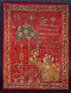 Из экспонируемых произведений большой интерес представляют памятники, происходящие из Охрида, важнейшего духовного и культурного центра. Это резная икона XIV века с изображением двунадесятых праздников, изготовленная из минерала лизардита, и литургические ткани, среди которых воздýх с образом Богоматери Великой Панагии.