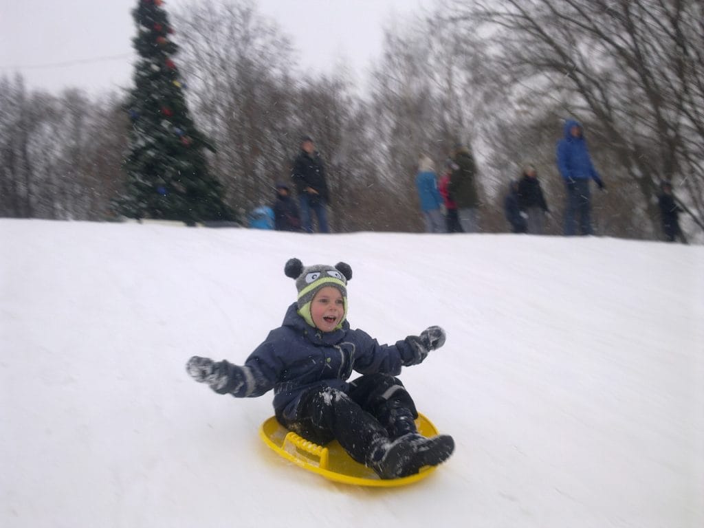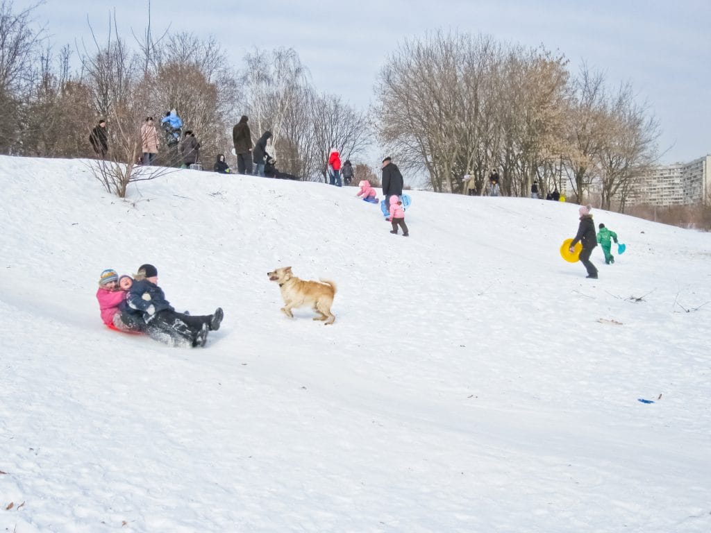 Снежная зима – пора ликования для детей и собак. Радость катания с горок и взятия снежных крепостей, практически недоступная для московских ребятишек из центра города – обычна в Свиблове, Медведкове, Отрадном. По берегам прудов, Яузы и Чермянки – суматошно веселая атмосфера. Как здесь, на длинном пологом спуске к Чермянке, вдоль Юрловского проезда в Отрадном,