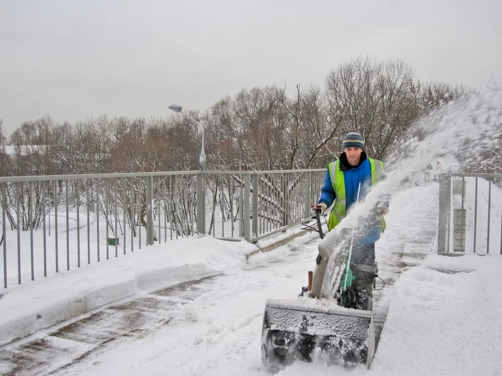 Мостик над Яузой занесло снегом. Тут работает специальная техника.