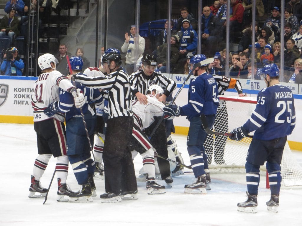 Как бы яростно зрители не свистели (перед победным голом гостей игрок хозяев Чайковски получил сильный удар шайбой и находился на льду в «нерабочем состоянии»), гости из Латвии увозят из столицы России победу.