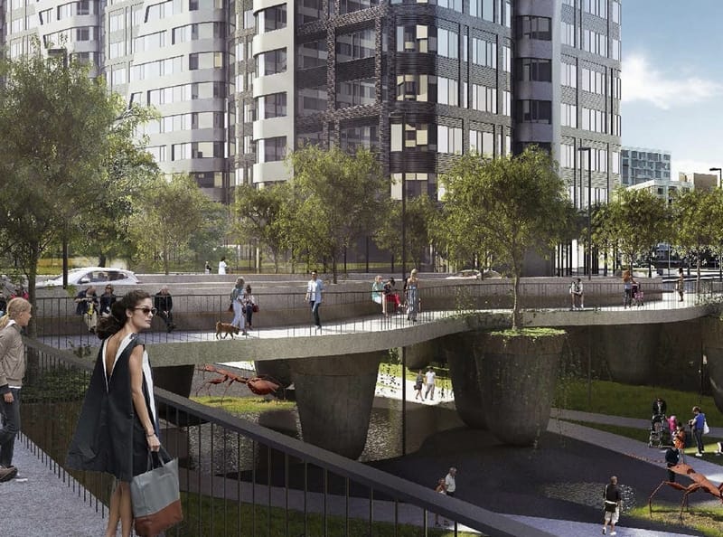 Мост гармонично впишется в концепцию озеленения и визуально свяжет улицу и парк, который пройдет прямо под ним.