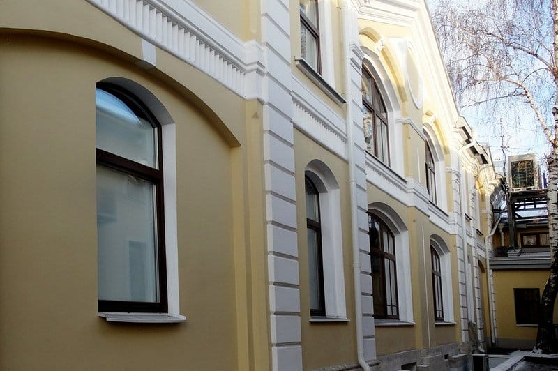 «До начала работ дом был в плачевном состоянии. Сейчас зданию вернули его исторический облик. Сначала там провели противоаварийные работы — восстановили кирпичную кладку, а также укрепили несущие стены, фундамент и перекрытия. Белокаменный и лепной декор фасадов довольно хорошо сохранился. Специалистам потребовались лишь воссоздать его утраченные элементы. На завершающем этапе фасады выкрасили в светло-желтый цвет, а лепные детали — в белый. Именно так здание выглядело в конце XIX века», — рассказал глава Департамента культурного наследия Москвы Алексей Емельянов.