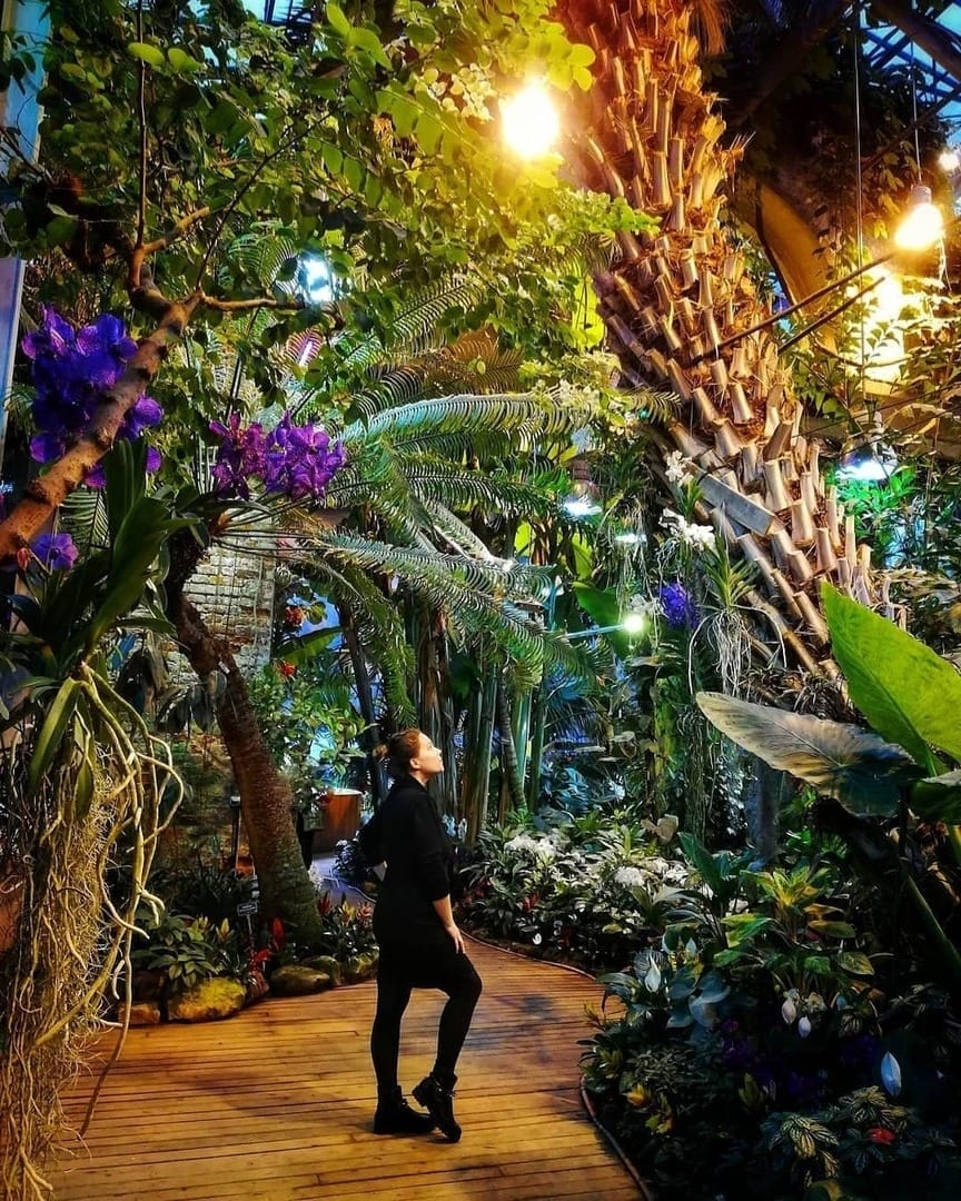 С четверга по субботу включительно тропики «Аптекарского огорода» открыты до 1 часа ночи и в Пальмовой оранжерее XIX века с 20.00 играет музыка.