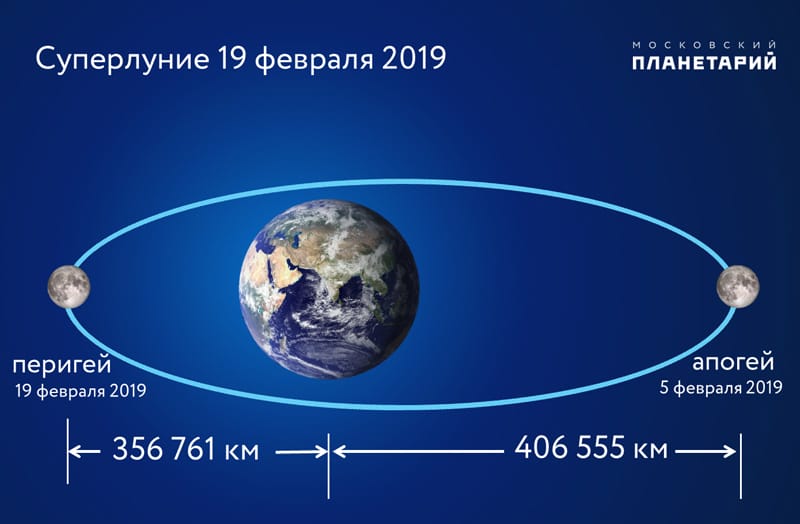 Итак, в ночь на 19 февраля готовимся наблюдать самую близкую Суперлуну 2019 года. Полная Луна появится после 16 часов и к полуночи достигнет максимальной высоты над южным горизонтом.