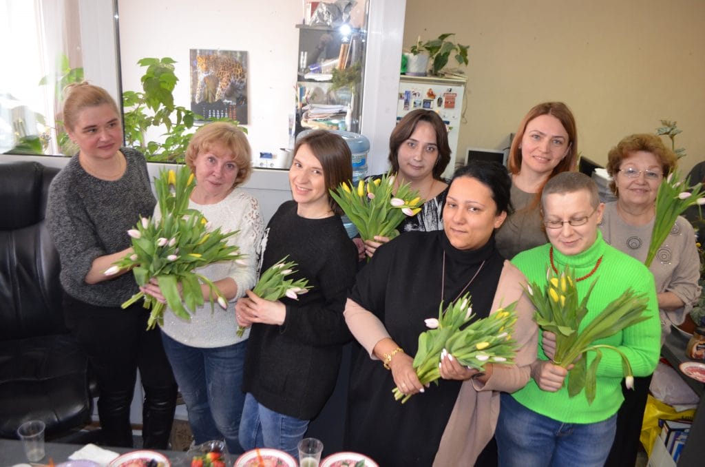 Выращенные мной цветы девушки упаковали в букеты, которые я привез в редакцию и подарил нашим женщинам к 8 Марта. Люблю дарить цветы, тем более выращенные своими руками.