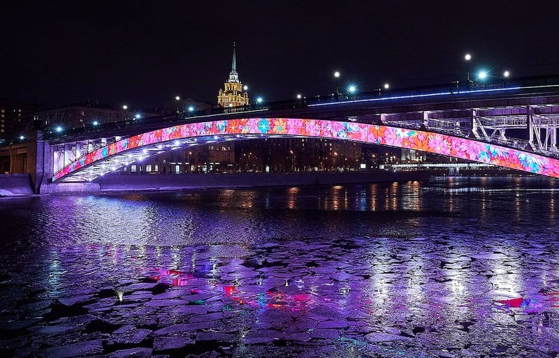 Динамическая подсветка, передающая до 16 миллионов цветов и оттенков, установлена на Смоленском метромосту