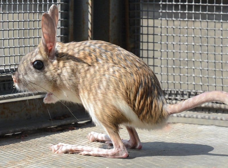 В Московском зоопарке живут пять больших тушканчиков — пара взрослых особей и трое подростков, родившихся в 2017 году. Большие тушканчики — самые крупные представители своего вида. Они занесены в Международную Красную книгу. В природе их можно встретить на юге Восточной Европы, в Азии, на юге Сибири (территория до Северо-Восточного Китая и Монголии) и в Северной Африке. Длина тела взрослой особи варьируется от 10 до 25 сантиметров, а вес в зависимости от времени года колеблется от 250 до 450 граммов. У тушканчиков очень короткое туловище и длинные мускулистые задние лапки, причем их длина может превышать длину передних конечностей в четыре раза. Хвост животного с черно-белой плоской кисточкой на конце может достигать длины до 30 сантиментов. При беге хвост используется в качестве балансира. Тушканчики ведут ночной образ жизни, питаются растениями, насекомыми и личинками.