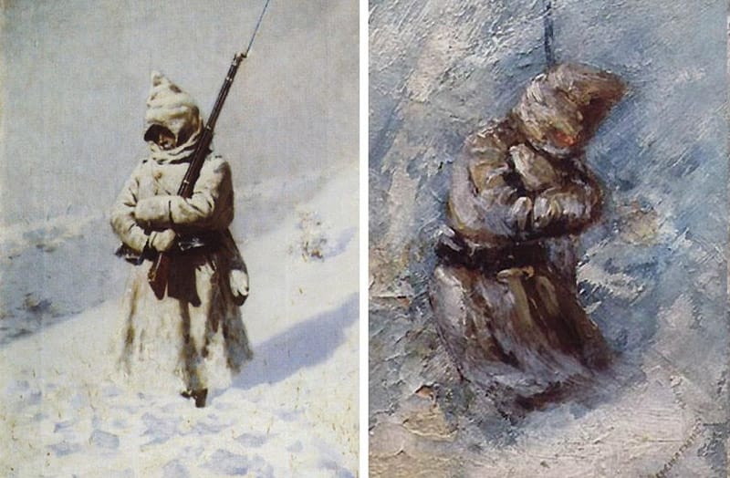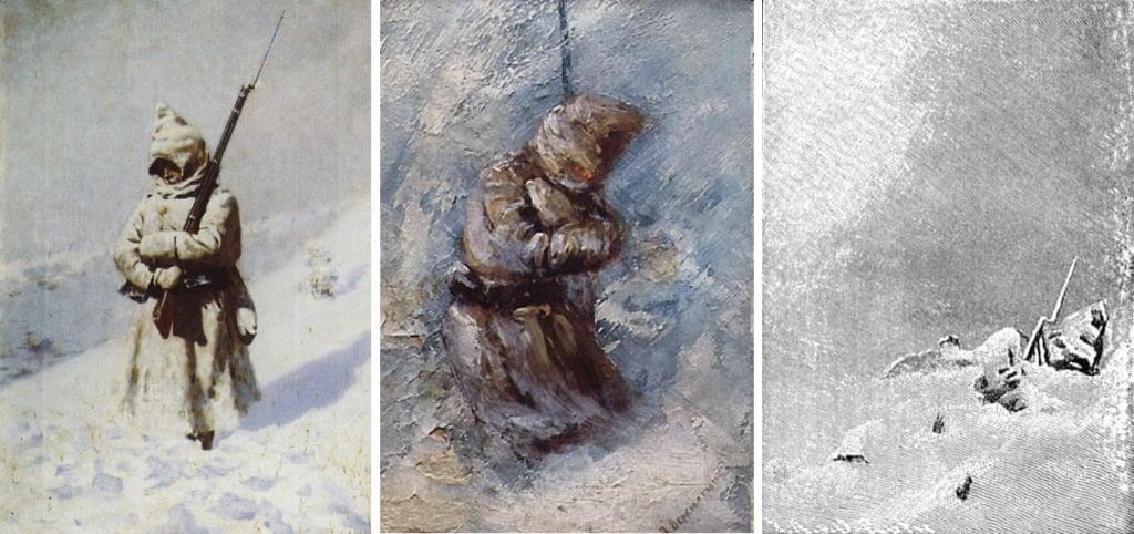 Сначала – об истории появления самой фразы. «На Шипке все спокойно» – название трех объединенных одним сюжетом картин Василия Верещагина (1842 – 1904), изображающих гибель русского солдата на Шипкинском горном перевале в Болгарии во время русско-турецкой войны 1877 -1878 годов. В своем триптихе Верещагин последовательно изображает гибель одного из русских солдат. На первой картине изображен по колени занесенный метелью часовой, забытый своим воинским начальством. На второй – он, верный воинскому долгу, стоит, хотя и засыпан снегом по самую грудь. На третьей – только огромный сугроб на месте солдата, единственная память о котором – угол шинели, пока еще не занесенный снегом.