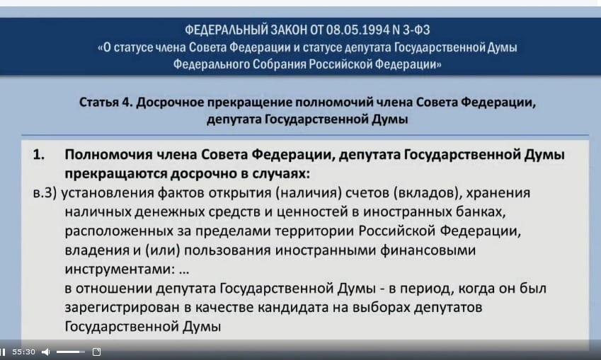Прозвучали требования не передавать мандат обманщику и вообще исключить из списка кандидатов. Потому что если ЦИК даст мандат владельцу иностранных счетов, Дума будет вынуждена сразу же лишить его полномочий.