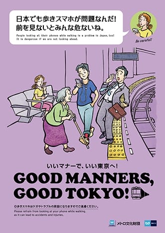 «Good manners – good Tokyo». Под таким лозунгом Токийский метрополитен призывает пассажиров соблюдать хорошие манеры. Эти слова работники размещают на специальных плакатах, которые впервые появились в метро столицы Страны Восходящего солнца аж в 1974 году…