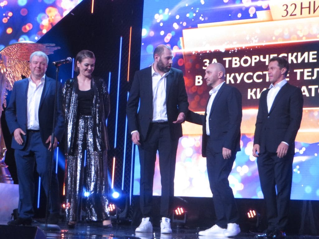 А дальше снова веселье. На сцену вышел Семен Слепаков, который снял фильм «Домашний арест». Академики отметили проект премией «За творческие достижения в области телевизионной кинематографии». Вместе с артистом, сочиняющим потрясающие сценарии и записывающим песни на злобу дня, на сцену поднялись участники самого обсуждаемого сериала последнего года: актеры Павел Деревянко, Анна Уколова, Александр Робак и режиссер Петр Буслов.