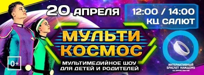 Есть ли жизнь на Марсе? Что такое черная дыра? Из чего состоят кольца Сатурна? И, наконец, неужели в этой Вселенной мы действительно одни-одинешеньки? Ответы на эти и множество других вопросов узнают участники уникального мультимедийного шоу для детей и взрослых «МультиКосмос», которое пройдет 20 апреля в КЦ «Салют».