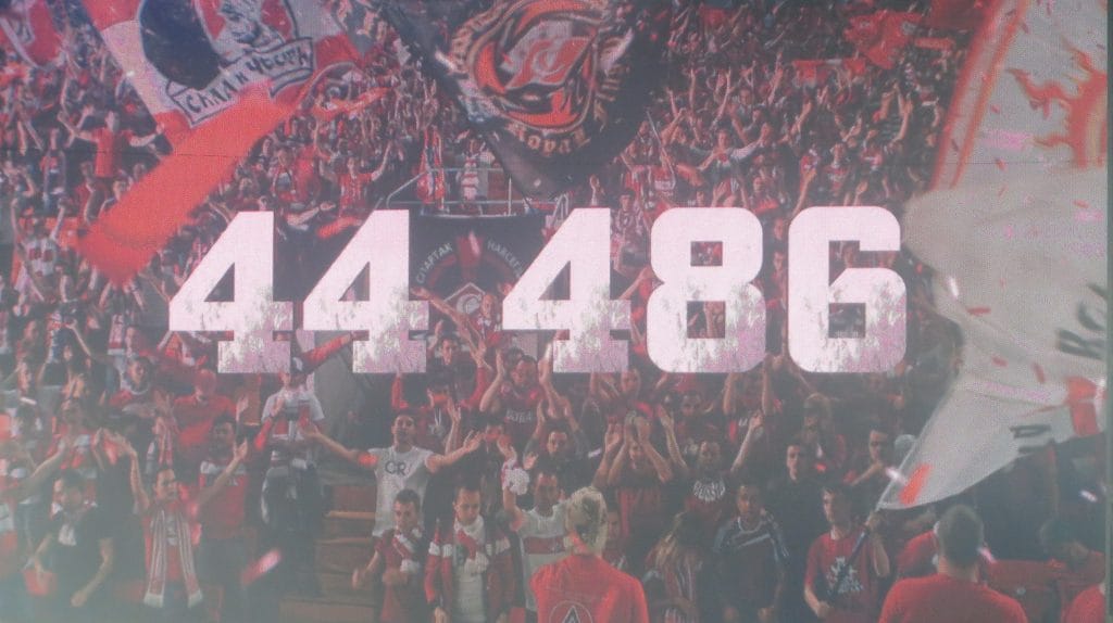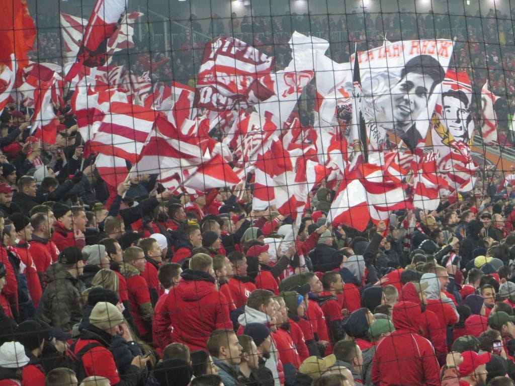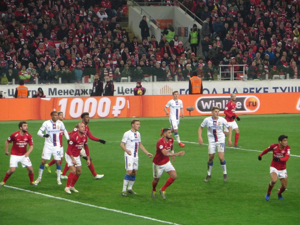 Перед стартовым свистком на «Открытие Арена» оба участника «золотой гонки» знали о победе «Краснодара». Фанаты хозяев встретили появление футболистов на изумрудном газоне мощным перфомансом «Выиграть или умереть». Ответ гостевого сектора был не такой масштабный, но достаточно красочный.