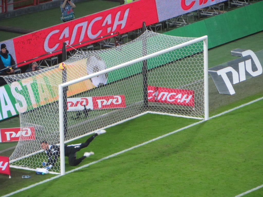 Недавнее приобретение коллектива из Санкт-Петербурга иранец Азмун в очередной раз (4 из 4) не использовал футбольный буллит. Гостевому нападающему даже не помогло то, что хозяйский кипер Гильерме сыграл неграмотно и позволил себя перебросить. Но форвард гостей просто не сумел попасть в семиметровые ворота. Нынешний голкипер сборной России допустил и вторую ошибку в первой части матча – отдал мяч сопернику. Но и здесь питерцы не наказали – Оздоев пробил за пределы поля.