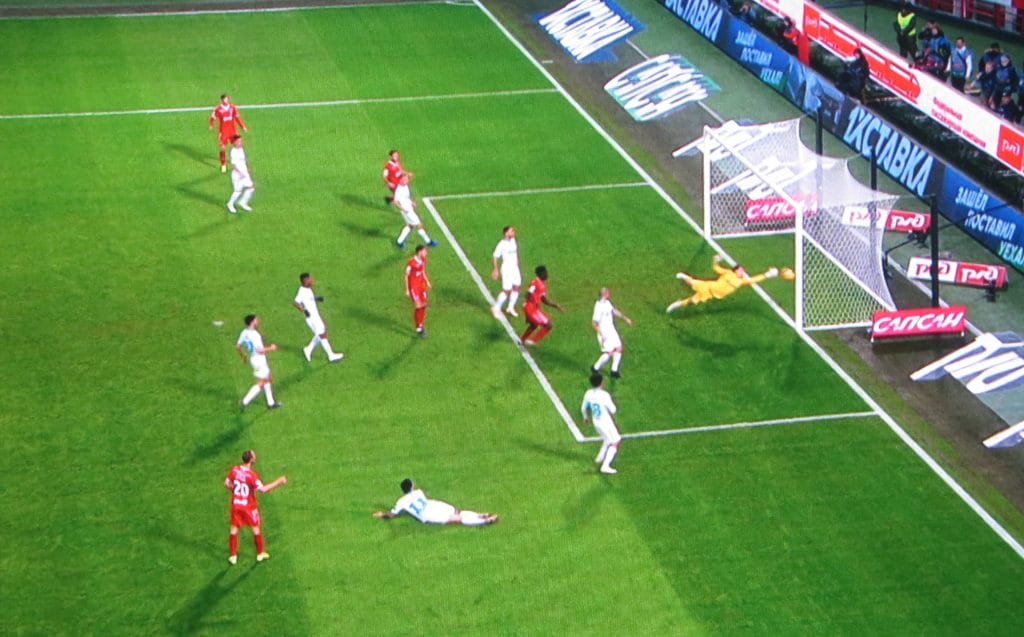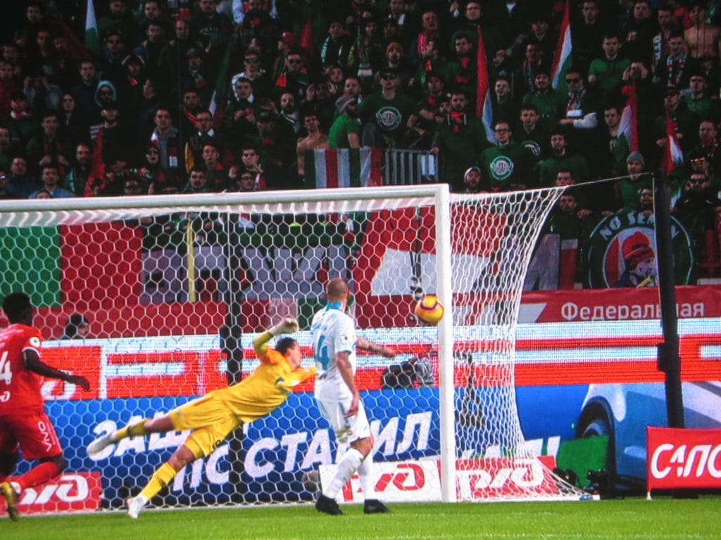 Как компенсация за не совсем понятный «горчичник» пришла для хозяев атака, в которой Игнатьев замышлял отнюдь не удар. Неудачное движение аргентинца Дриусси привело к автоголу и равному счету на табло. Второй (или первый – после Акинфеева теперь можно и запутаться) вратарь сборной России Лунев в этом моменте был бессилен.