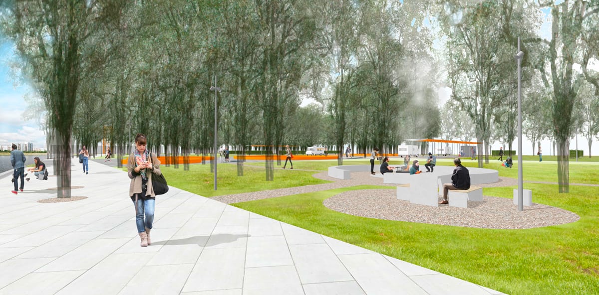 Новый зеленый парк на протяжении всей двухкилометровой береговой зоны станет таким же уютным и благоустроенным, как у соседей в Братееве и Марьине. Здесь появятся велодорожки, променады, спуски к воде и пикниковые точки, множество детских и спортивных площадок, а также площадь для проведения праздников, фестивалей и других мероприятий.