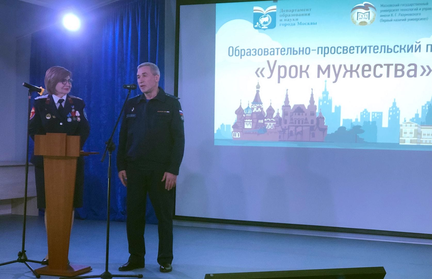 Почему военнослужащим российской армии пришлось выполнять боевой долг в Афганистане, Таджикистане? Что такое военные династии и какую роль они играли в истории нашей страны? Как выявлять в Интернете вредоносные сайты и бороться с киберпреступностью? А также из чего варят солдатскую кашу, как правильно стрелять из лука, собирать и разбирать автомат? Ответы на все эти вопросы вчера получили почти триста столичных школьников – учащихся кадетских классов, которые пришли на «Урок мужества» в Московский университет технологии и управления им. К. Г. Разумовского. По словам ректора университета Валентины Ивановой, урок мужества проводился в рамках проекта столичного Департамента образования и науки «Университетские субботы».