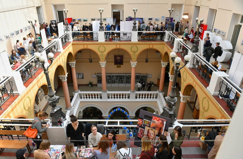 В течение всего дня на балюстраде третьего этажа будет работать стендовая сессия, в ходе которой представители более двадцати крупнейших СМИ расскажут студентам об условиях прохождения практики и стажировках. В качестве участников, ведущих мастер-классов и спикеров выступят представители российских информационных агентств, издательских домов, телеканалов, радиостанций, печатных СМИ, а также PR- и event-агентств, пресс-служб государственных компаний и корпораций.