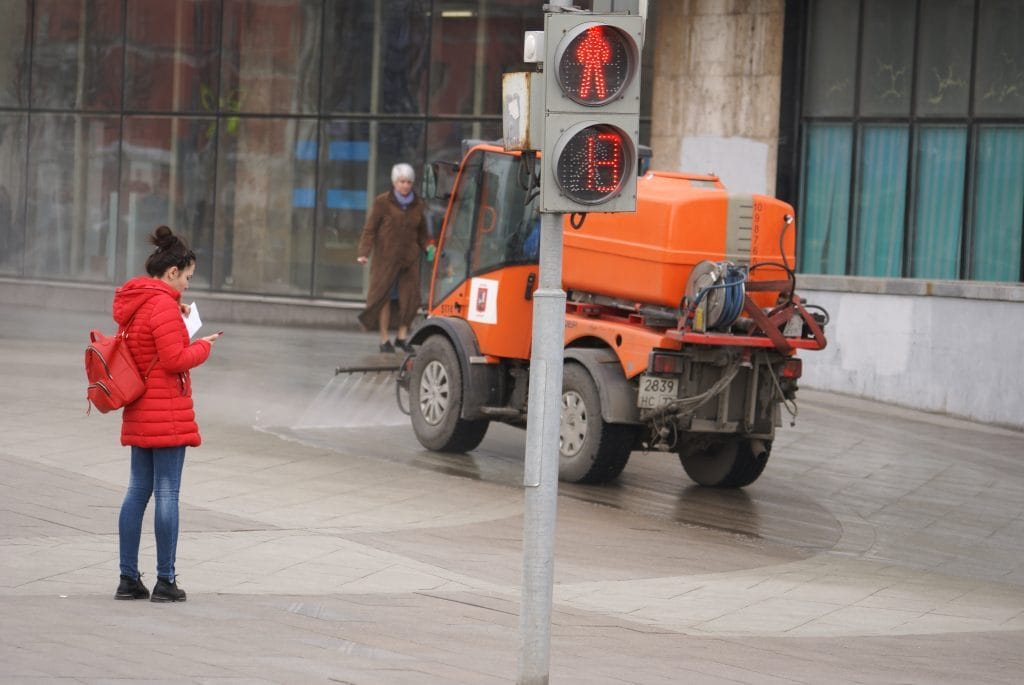 Кроме того, коммунальные службы промывают светофоры, остановки, барьерные ограждения, пешеходные переходы, указатели и фонарные столбы.