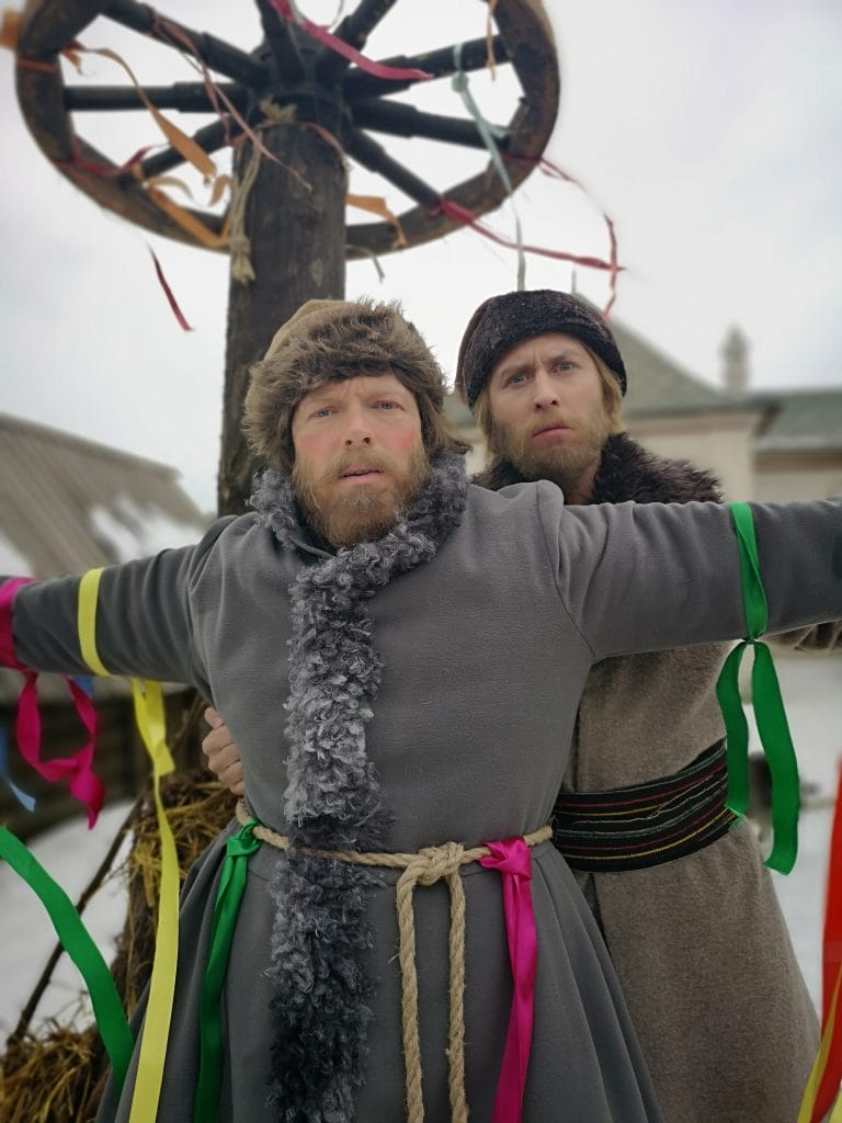 Кроме того, актёры примерили образы Юлия Цезаря, Пушкина и героев фильма «Бумер», а в одной из сцен окунулись в эпоху татаро-монгольского ига: по сюжету с Сени требуют дань за его жену Марину (Анна Бегунова). «В тот день было очень холодно, а древнерусская одежда не спасала актёров, — вспоминает художник по костюмам Гелена Мартемьянова. —Для согрева мы предложили им надеть под костюмы термобелье, тёплые штаны и пуховики. Благодаря чему даже стройные актрисы приобрели пышные формы того времени».