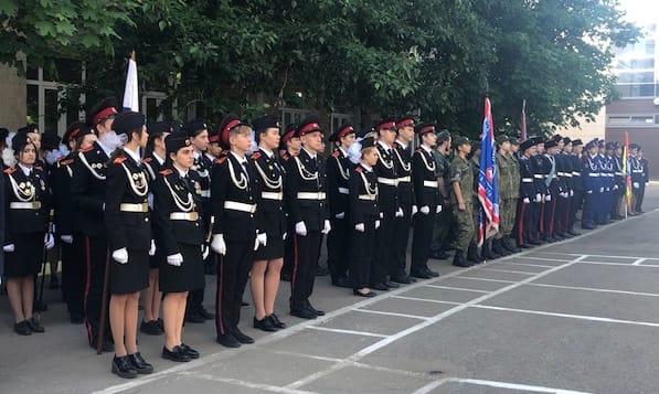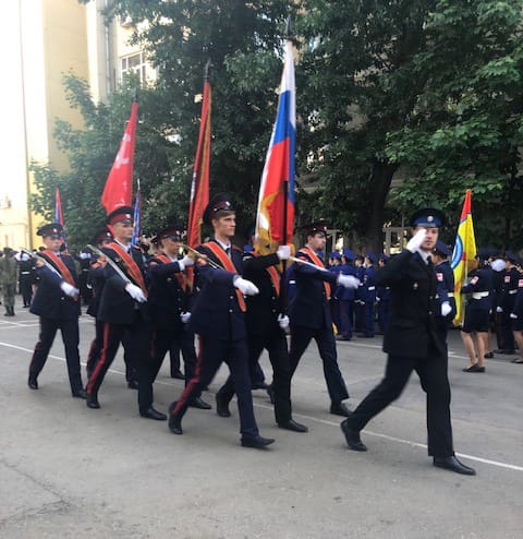 Восемь кадетских классов из московских школ, входящих в кластер непрерывного казачьего образования, приняли участие в смотре-конкурсе строя и песни, посвященном 74-й годовщине Победы нашей страны в Великой Отечественной войне. Он прошел на базе Московского государственного университета технологии и управления им. К. Г. Разумовского (Первый казачий университет).