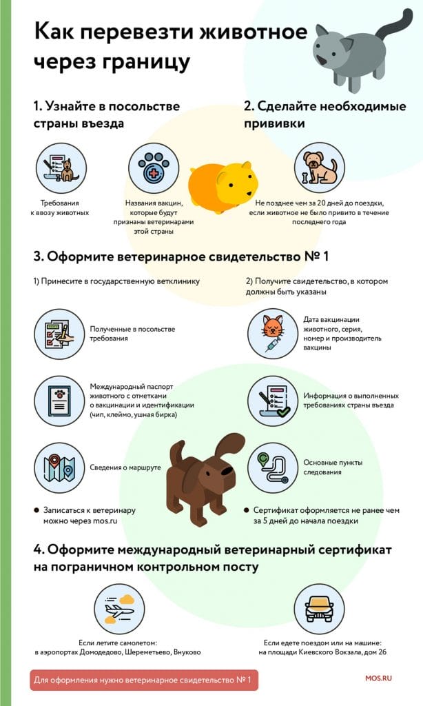 Получить подробную информацию о правилах перевозки, а также оформить сопроводительные документы и сделать прививки домашним животным можно в любом государственном лечебном учреждении ветеринарной службы столицы. Записаться к выбранному ветврачу можно онлайн на mos.ru в разделе «Услуги».