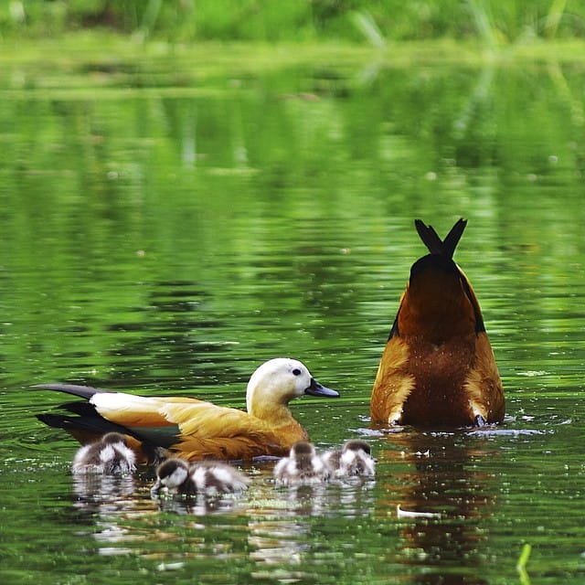 Первые птенцы огарей — красных уток — поселились в Ботаническом саду МГУ «Аптекарский огород» — посетители могут увидеть огарят на старинном пруду, на Зеркальном канале и у других водоёмов сада. У одного семейства семеро малышей, у другого — 1 (как удалось узнать методом наблюдения).