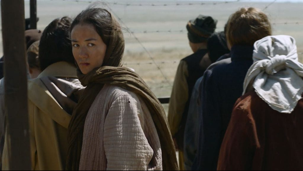 Дарья Екамасова: «Эта картина рассказывает историю женщин, у которых была отобрана и отрезана жизнь. Эту историю ни в школах, ни в институтах особо не затрагивают, поэтому для меня было важно рассказать её как можно честнее. Моя героиня профессиональная швея. У неё руки от Бога. Мне нравится её скорость, её внутренняя непредсказуемая полифония, беспринципность и выносливость. Она умеет любить. Конечно, она не без изъянов. Характер у неё взрывной, и она живёт в своём, каком-то придуманном внутреннем мире. И она, как и другие узницы лагеря «А.Л.Ж.И.Р.» потеряли детей, мужей, всю свою привычную жизнь, но не потеряли надежду».