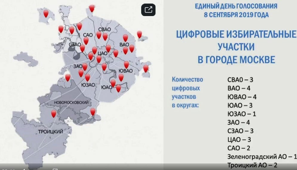 ЦИК принял постановление «Об утверждении перечня цифровых избирательных участков для проведения голосования в городе федерального значения Москве на дополнительных выборах депутатов Государственной Думы Федерального Собрания РФ седьмого созыва и выборах высших должностных лиц субъектов РФ (руководителей высших исполнительных органов государственной власти субъектов РФ), проводимых 8 сентября 2019 года».