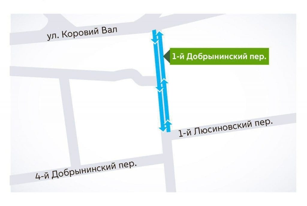 На участке 1-го Добрынинского переулка ведено двустороннее движение.