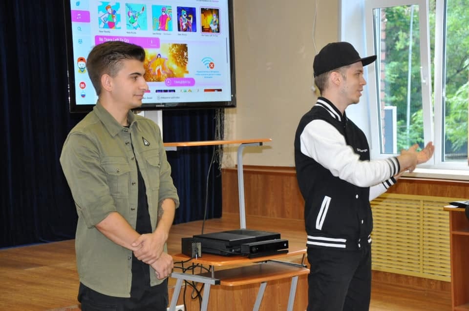 В рамках открытия летней кибершколы состоялись мастер-классы по киберигре Just Dance 2019, которые провели чемпионы России и участники чемпионата мира по данному виду компьютерного спорта Данила Попов и Владислав Шаповалов. Just Dance – музыкальная игра, популярная у подростков всего мира уже более десяти лет. Используя компьютер, игрок должен максимально точно повторять те движения, кото и ирые он видит на экране, тем самым зарабатывая очки.