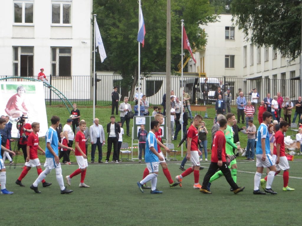После торжественной церемонии состоялся тот самый матч, который помог организовать клуб «Спартак». Перед стартовым свистком краткий спич молодому поколению от Игоря Рабинера, одного из авторов книги «Федор Черенков», вышедшей в серии «ЖЗЛ» издательства «Молодая гвардия». Первый удар по мячу выполнил 94-летний, по прежнему задорный и мастеровитый, Никита Симонян. Встречу между учениками 384-й школы и воспитанниками академии «Спартака» за Кубок памяти Черенкова комментировал один из лучших мастеров микрофона Георгий Черданцев. Футболисты юношеской школы московского «Спартака» победили со счетом 7:1. По окончании матча два лучших игрока из обеих команд получили книгу Игоря Рабинера и Владимира Галедина, посвященную Черенкову: у «Спартака» им стал Леонид Васильев, у школы №384 — Илья Афиногенов.