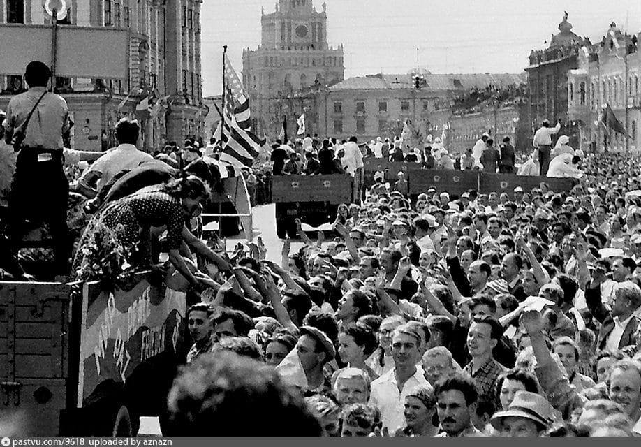 «В Лужниках все руководство СССР во главе с Никитой Хрущевым более часа терпеливо ожидало, пока грузовики с иностранными гостями пробьются сквозь уличную толпу и прибудут на церемонию открытия фестиваля», – позже в одном из интервью вспоминал участник этих событий Владимир Кулик.
